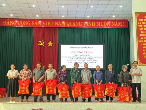 Nhân dịp Tết Nguyên đán Bính Ngọ năm 2026, Ủy ban Nhân dân phường Tây Nam đã tổ chức Chương trình trao tặng quà Tết cho các gia đình chính sách, người có công với cách mạng trên địa bàn phường.