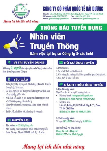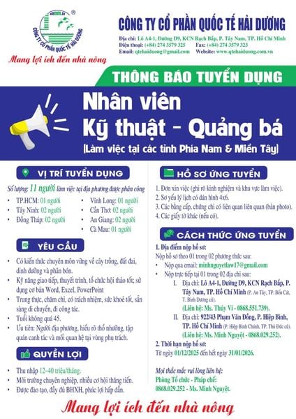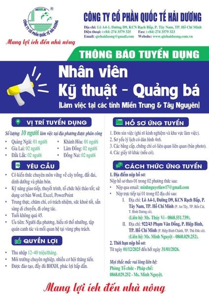 CÔNG TY CỔ PHẦN QUỐC TẾ HẢI DƯƠNG TUYỂN DỤNG